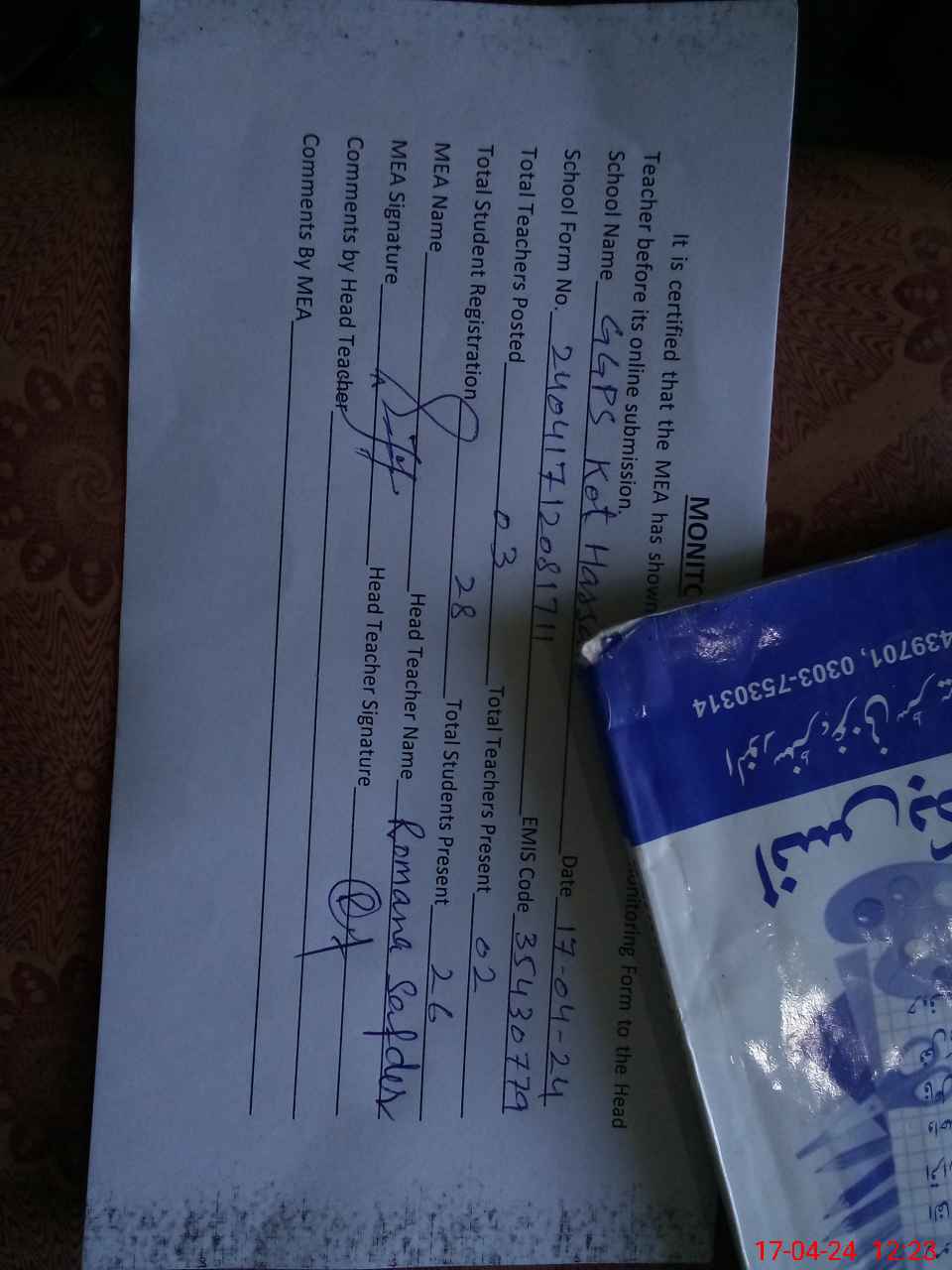 | EMIS Code: 35430779 | Name of School: GGPS KOT HASSAN MOHAMMAD | |||