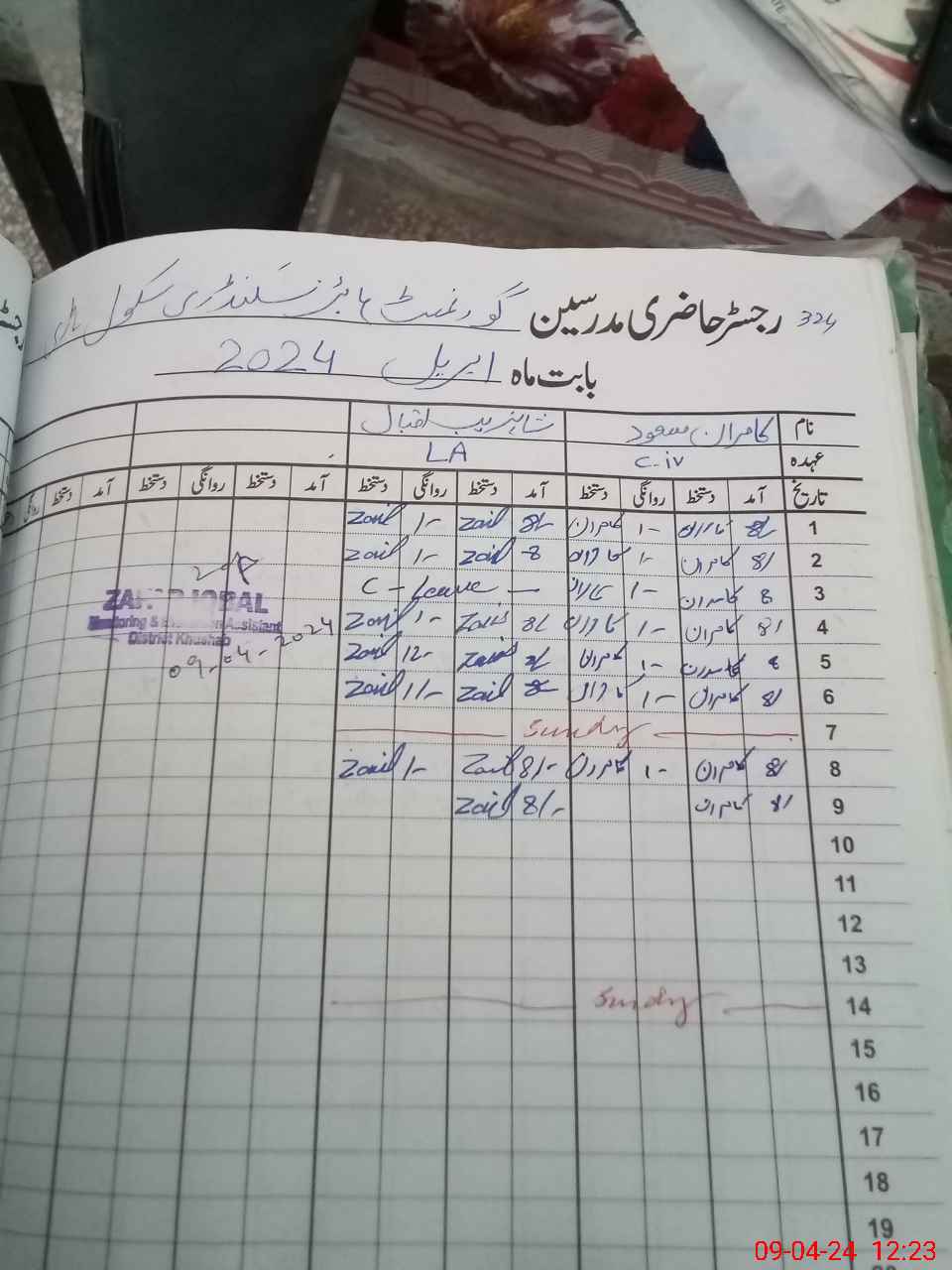 | CNIC | Full Name | Designation | R/C | Absence During Last Calender Month |