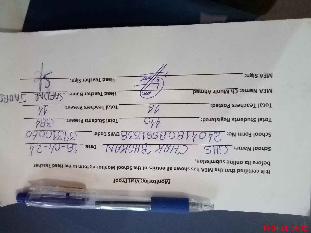 | EMIS Code: 39310060 | Name of School: GHS BHOKAN | |||