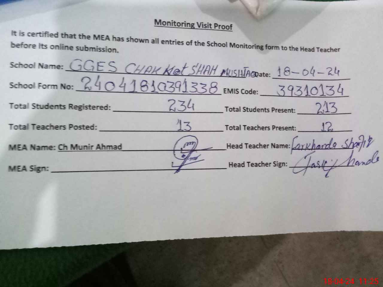 | EMIS Code: 39310134 | Name of School: GGES KOT SHAH MUSHTAQ | |||