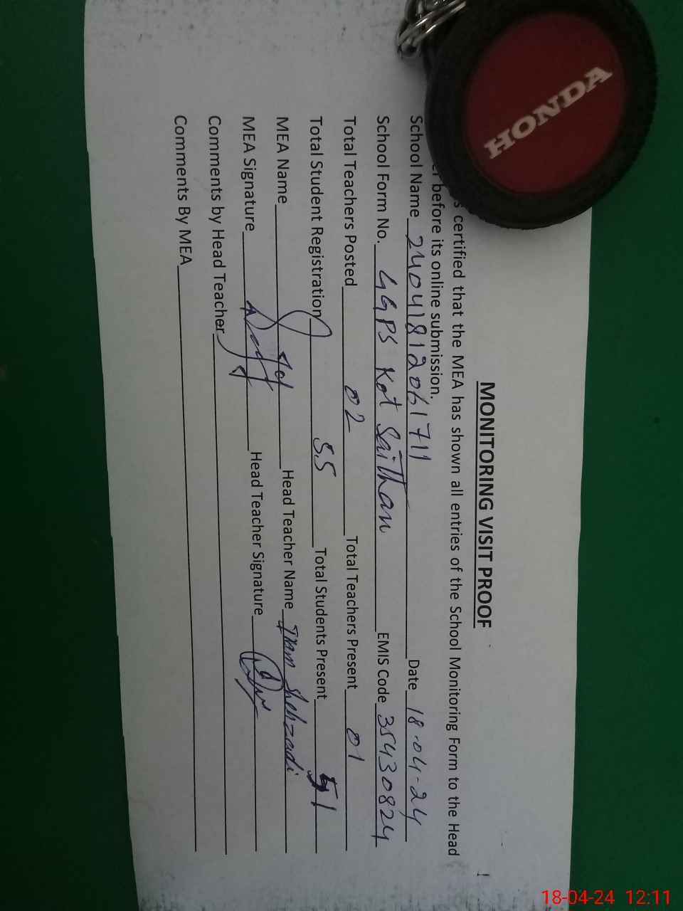 | EMIS Code: 35430824 | Name of School: GGPS KOT SEITHAN | |||