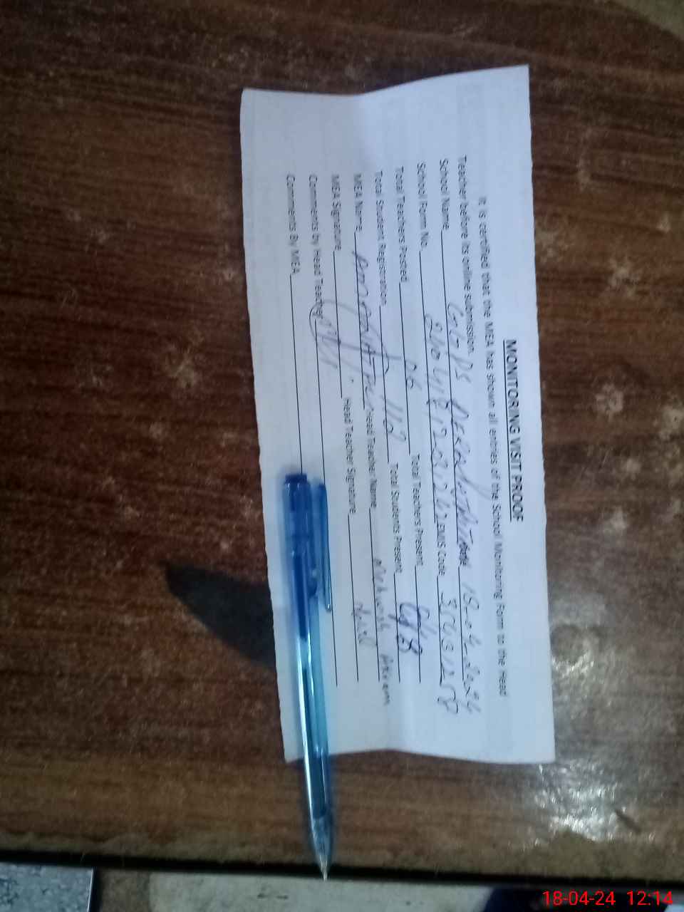 | Attendance Register | Head Teacher | MEA with School | Visit Proof |