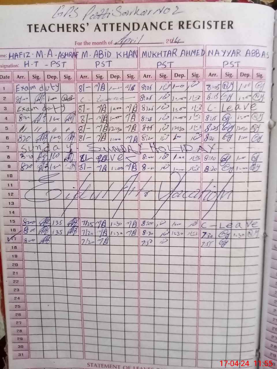 | Name: HA**** MU**** AN**** AS**** Designation: (School Headmaster's/Headmistress's) PST Phone/Cell Number: 03**** |