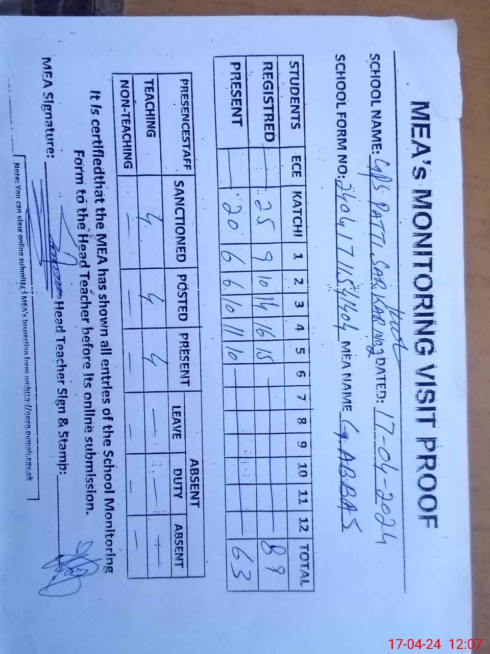 | EMIS Code: 36420216 | Name of School: GPS PATTI SARKAR NO.2 P/O 3/AH KHANEWAL | |||