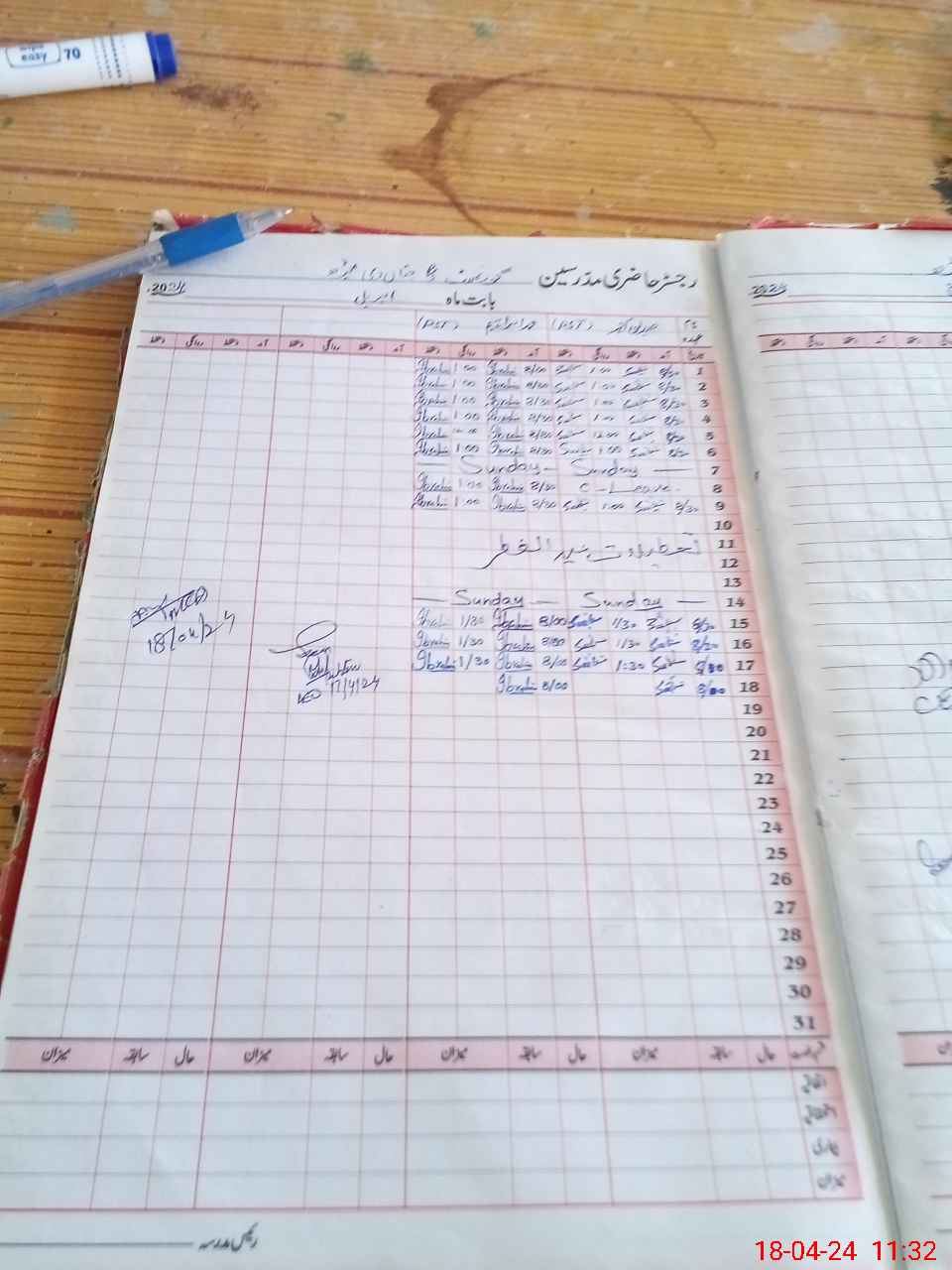 | CNIC | Full Name | Designation | R/C | Absence During Last Calender Month |