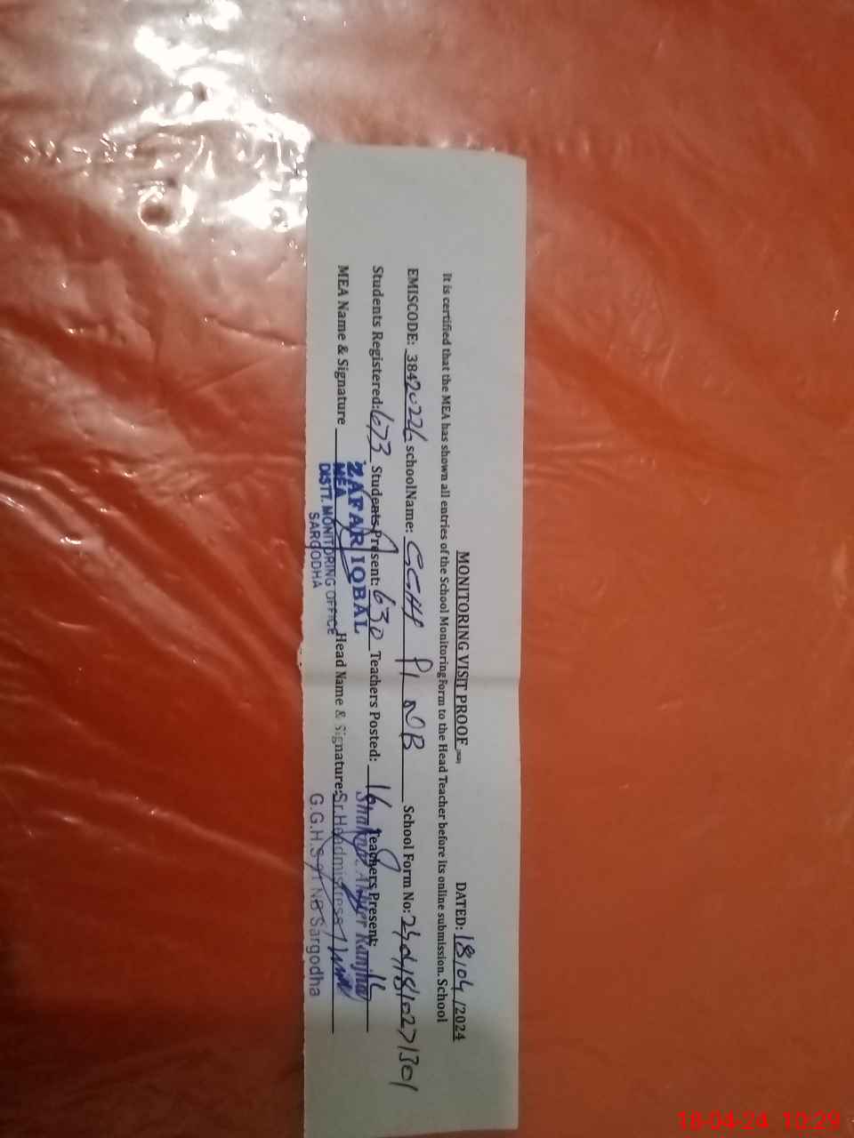 | Attendance Register | Head Teacher | MEA with School | Visit Proof |