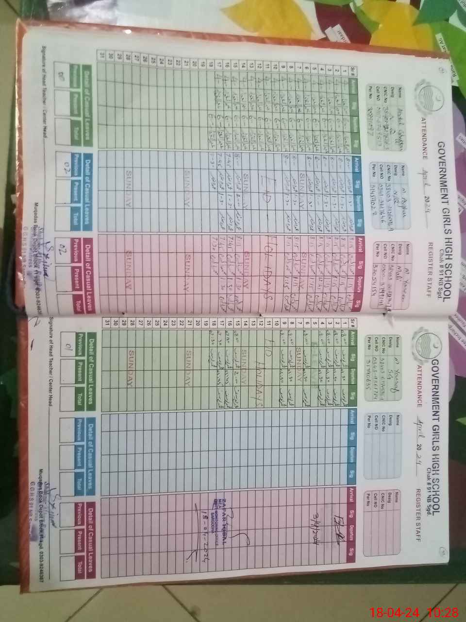 | CNIC | Full Name | Designation | R/C | Absence During Last Calender Month |