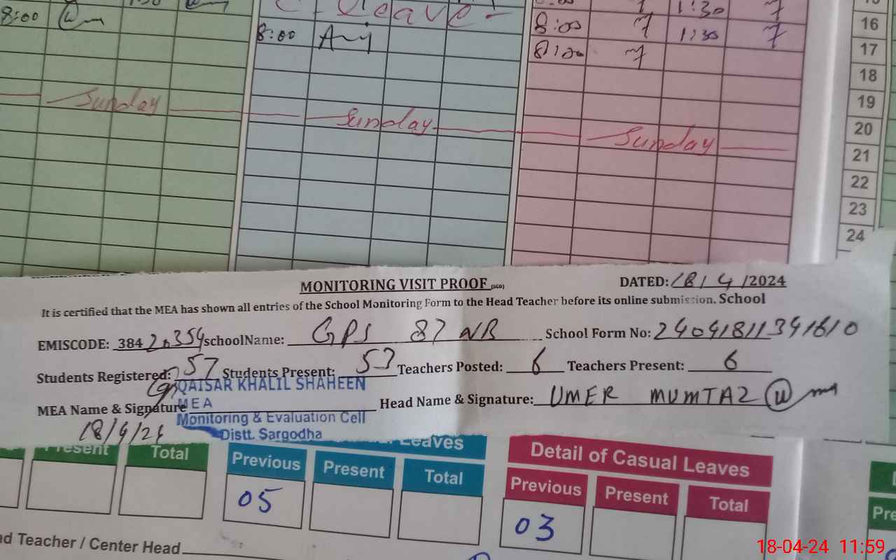 | EMIS Code: 38420354 | Name of School: GPS CHAK NO.87 NB | |||