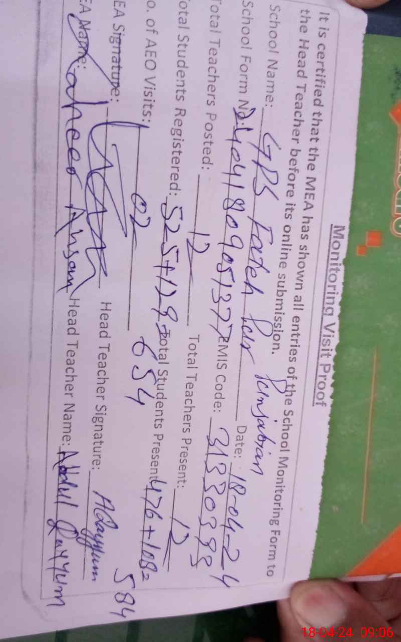 | EMIS Code: 31330393 | Name of School: GPS FATEH PUR ARAIN | |||