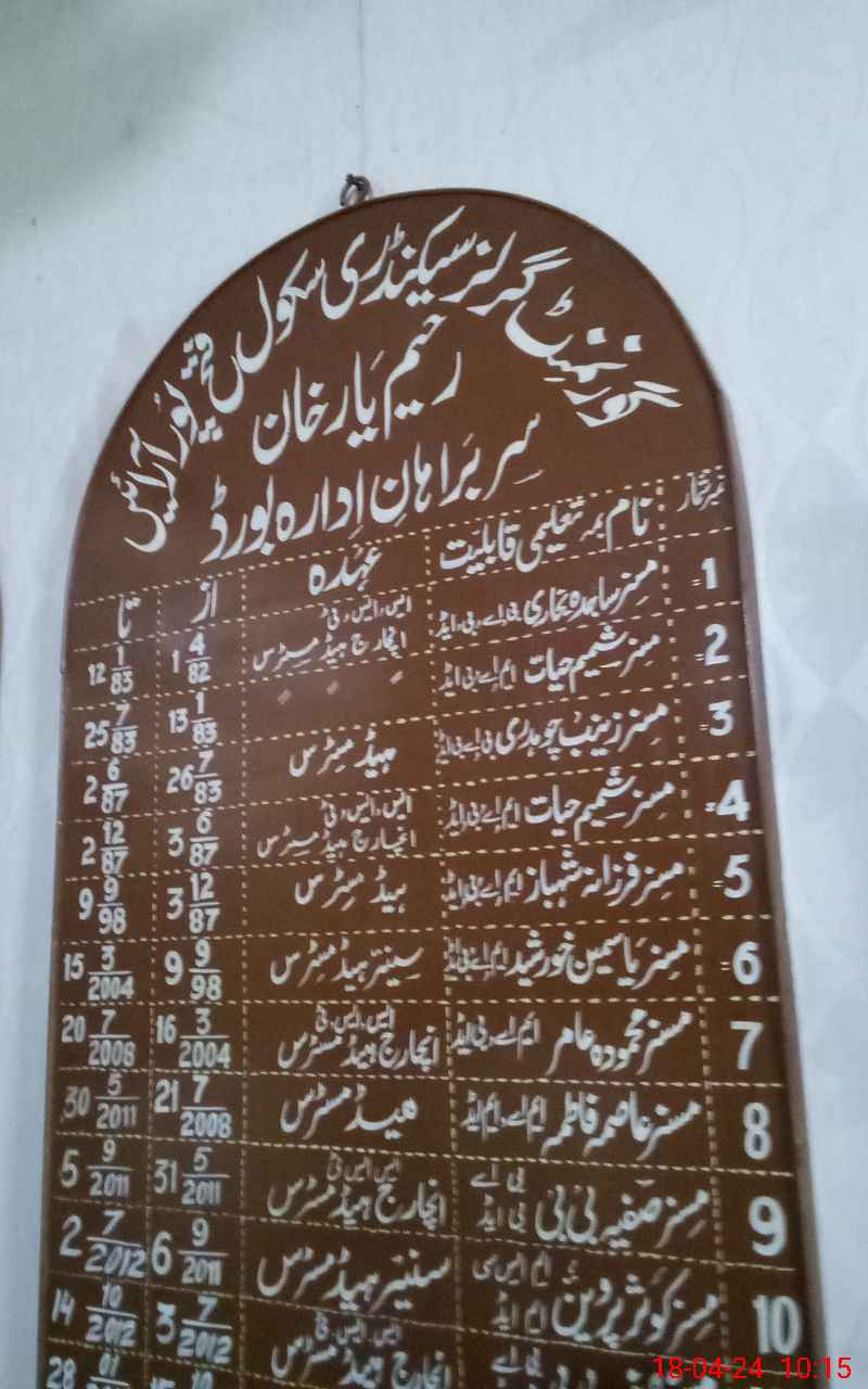 | District: RAHIMYAR KHAN | Tehsil: RAHIMYAR KHAN | Markaz: SECONDARY-WING | Level: High | |