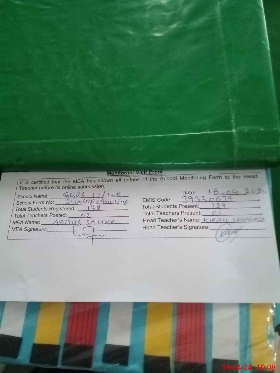 | EMIS Code: 39330679 | Name of School: GGPS CHAK NO. 17/1-R | |||