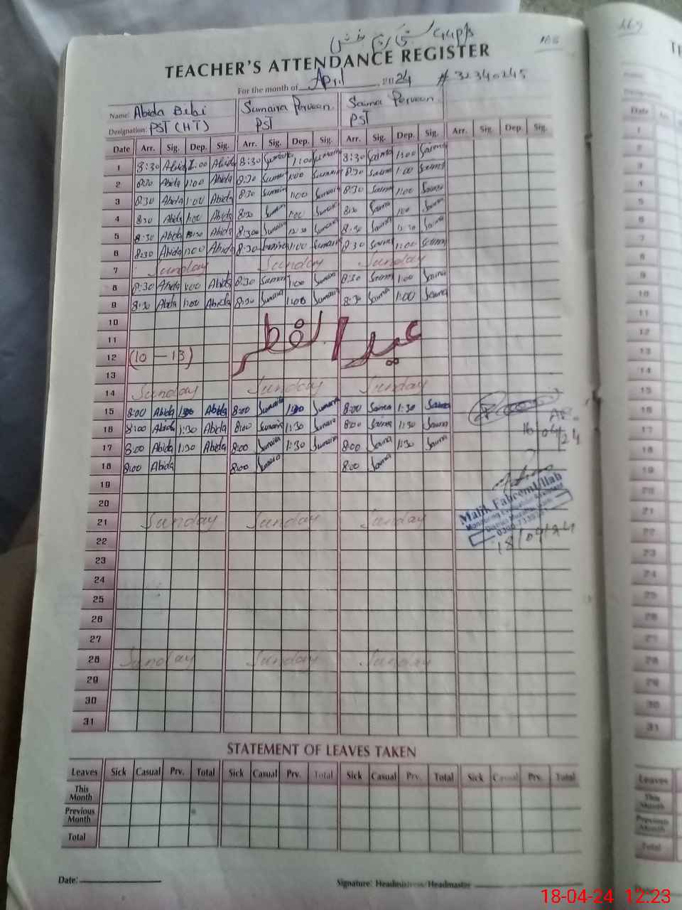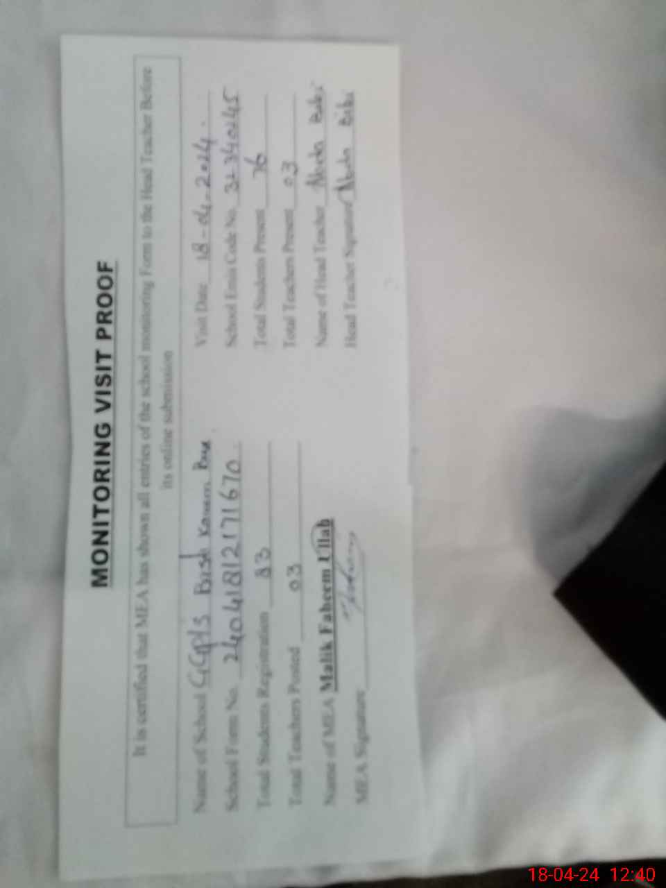 | Name: AB**** BI**** Designation: (School Headmaster's/Headmistress's) PST Phone/Cell Number: 03**** |