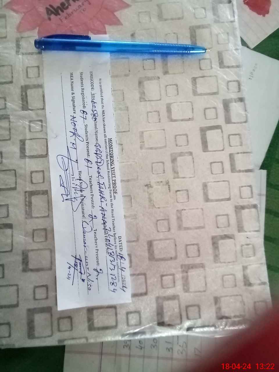 | EMIS Code: 38460580 | Name of School: GGPS DERA TAHARI ANA | |||