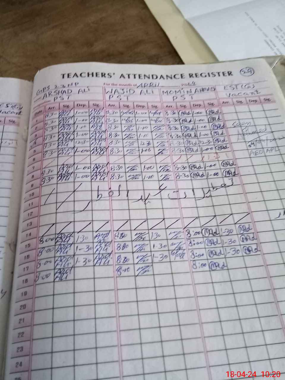 | Name: AR**** AL**** Designation: (School Headmaster's/Headmistress's) PST Phone/Cell Number: 03**** |