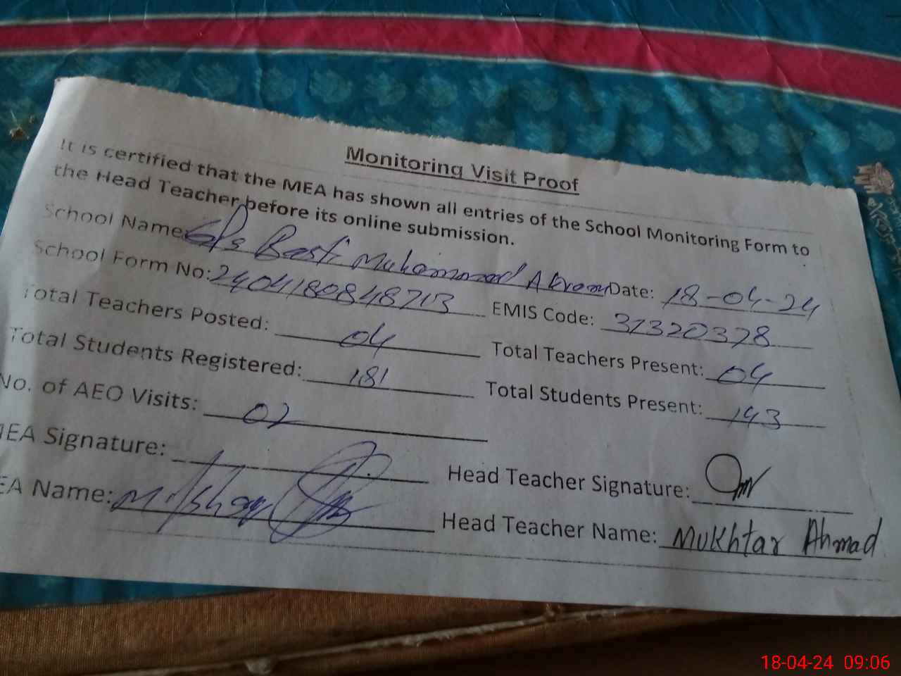 | EMIS Code: 31320378 | Name of School: GPS BASTI MUHAMMAD AKRAM | |||