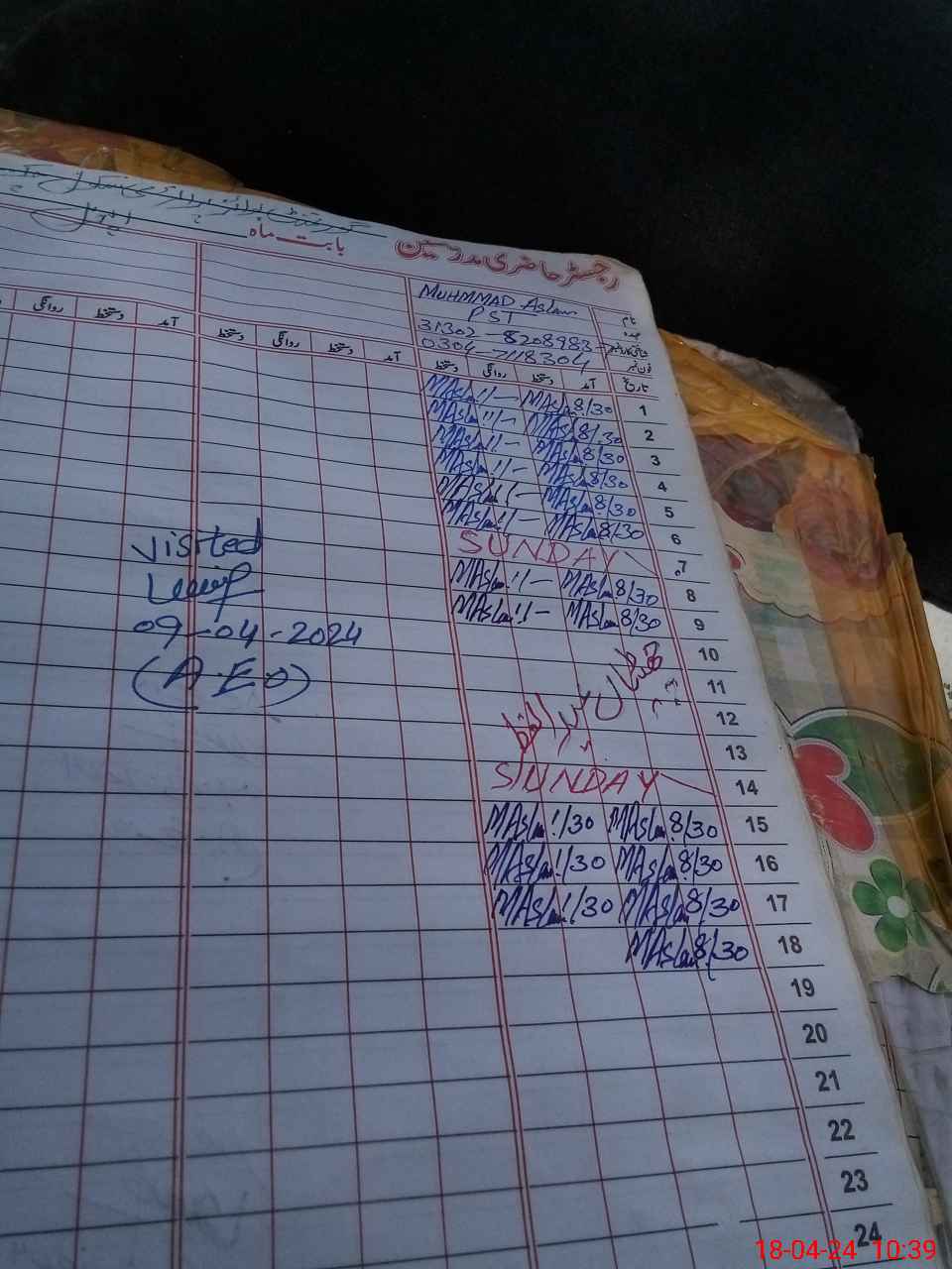 | Name: MU**** AS**** Designation: (School Headmaster's/Headmistress's) PST/PTC/JV Phone/Cell Number: 03**** |