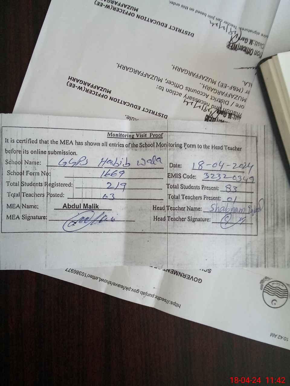 | EMIS Code: 32320349 | Name of School: GGPS HABIB WALA | |||