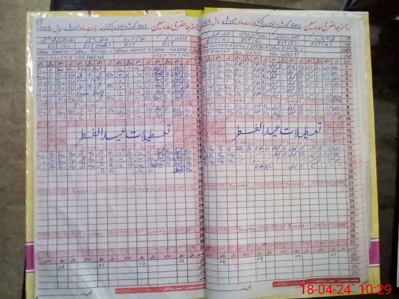 | 36**** | Kh**** Ta**** Ma**** Kh**** | Regular | 4 | 0 | 0 | 0 | 0 | 0 | 0 | 0 | 4 | Exam Duty | |