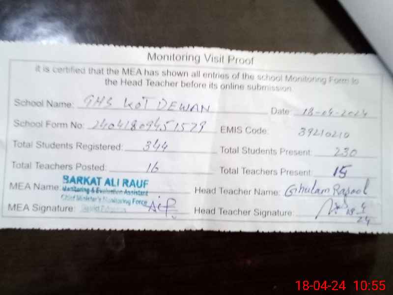 | EMIS Code: 39210210 | Name of School: GHS KOT DEWAN PO PAKPATTAN | |||