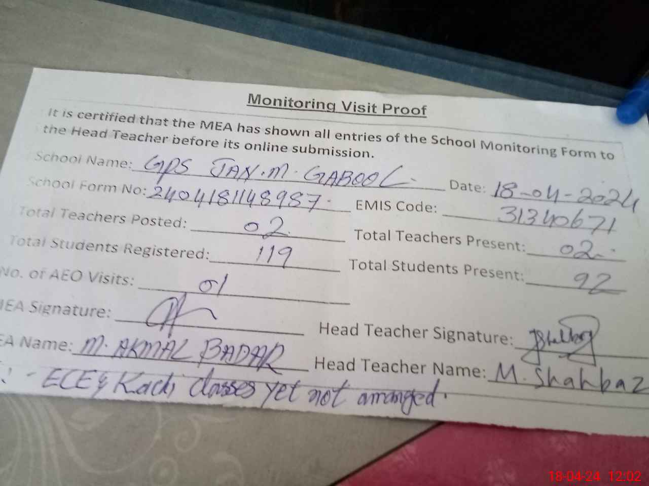 | EMIS Code: 31340671 | Name of School: GPS BASTI JAN MUHAMMAD GABOL | |||