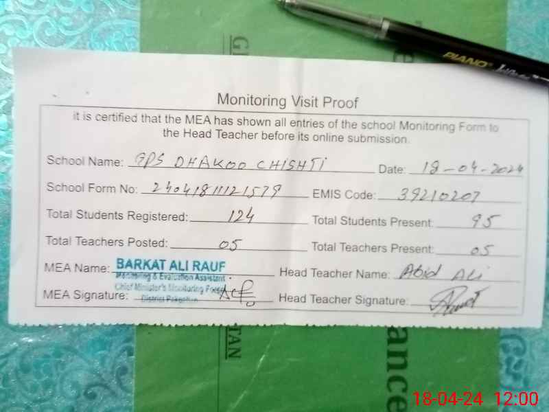| EMIS Code: 39210207 | Name of School: GPS DHAKOO CHISHTI PO PAKPATTAN | |||