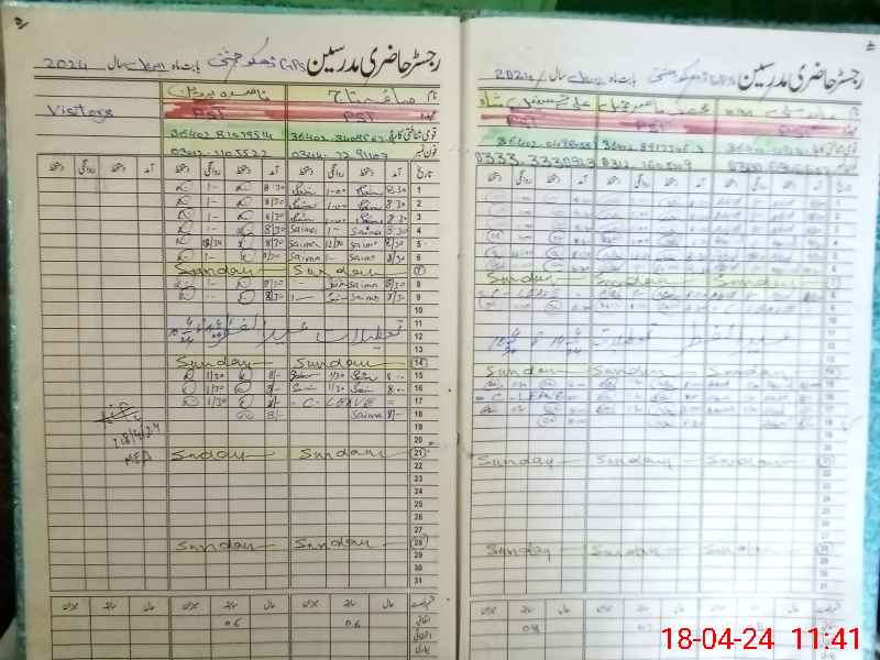 | CNIC | Full Name | Designation | R/C | Absence During Last Calender Month |