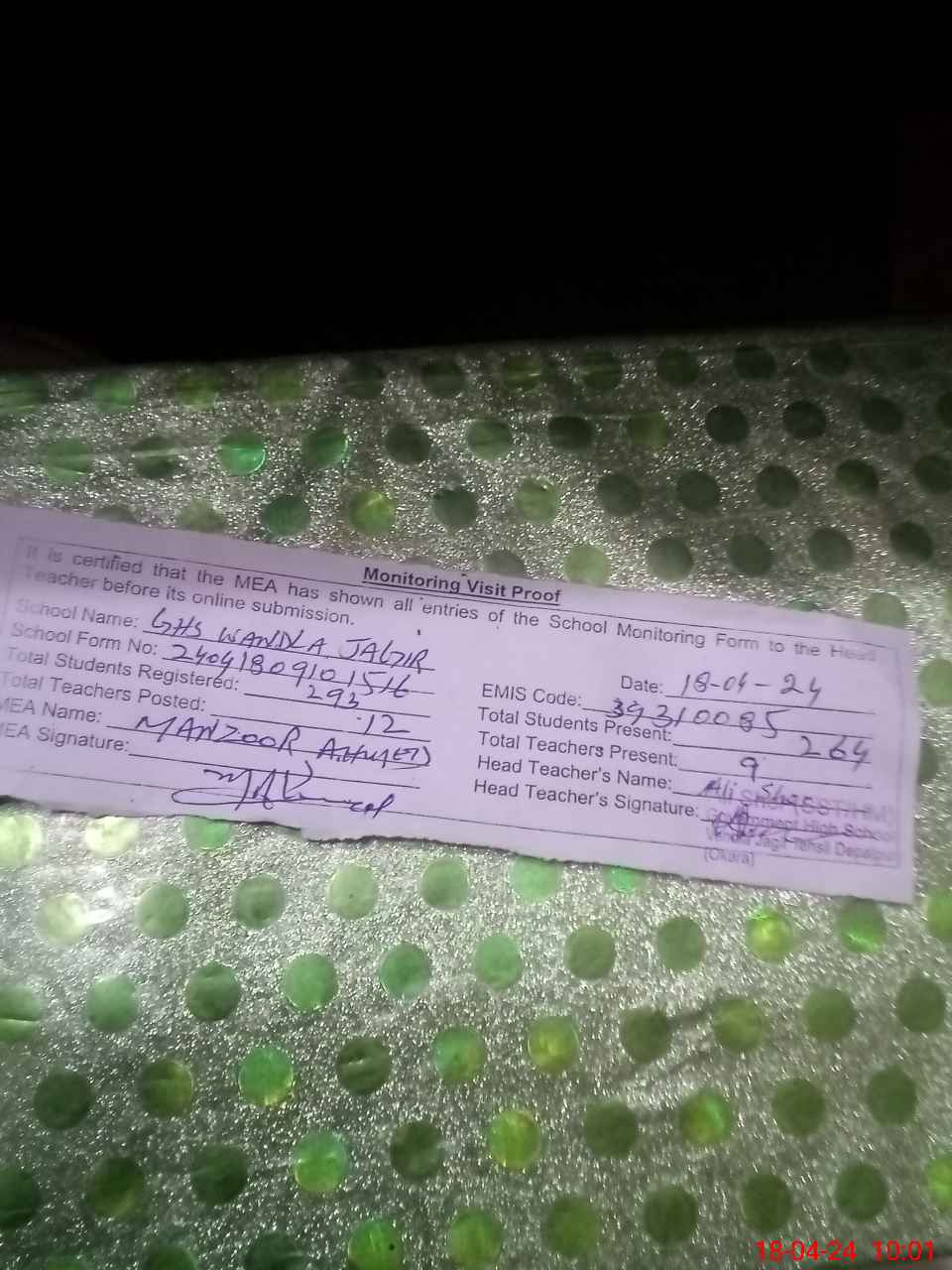 | EMIS Code: 39310085 | Name of School: GHS WANDLA JAGIR | |||