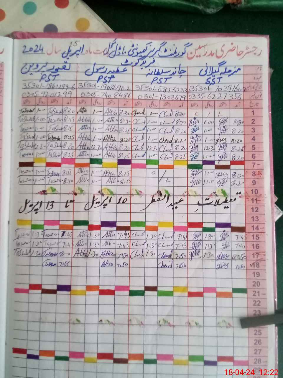 | Name: MU**** GI**** Designation: (School Headmaster's/Headmistress's) S.S.T.(SC) Phone/Cell Number: 03**** |