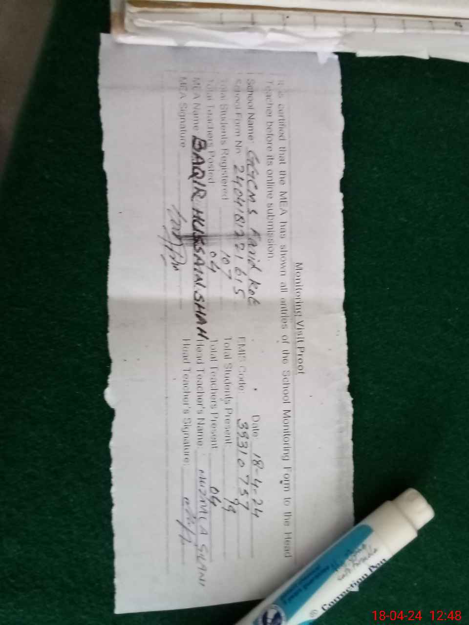 | Certified that this School was Inspected by the Undersigned MEA/DMO Today and the Information Stated Above is as Per Record. | |||||