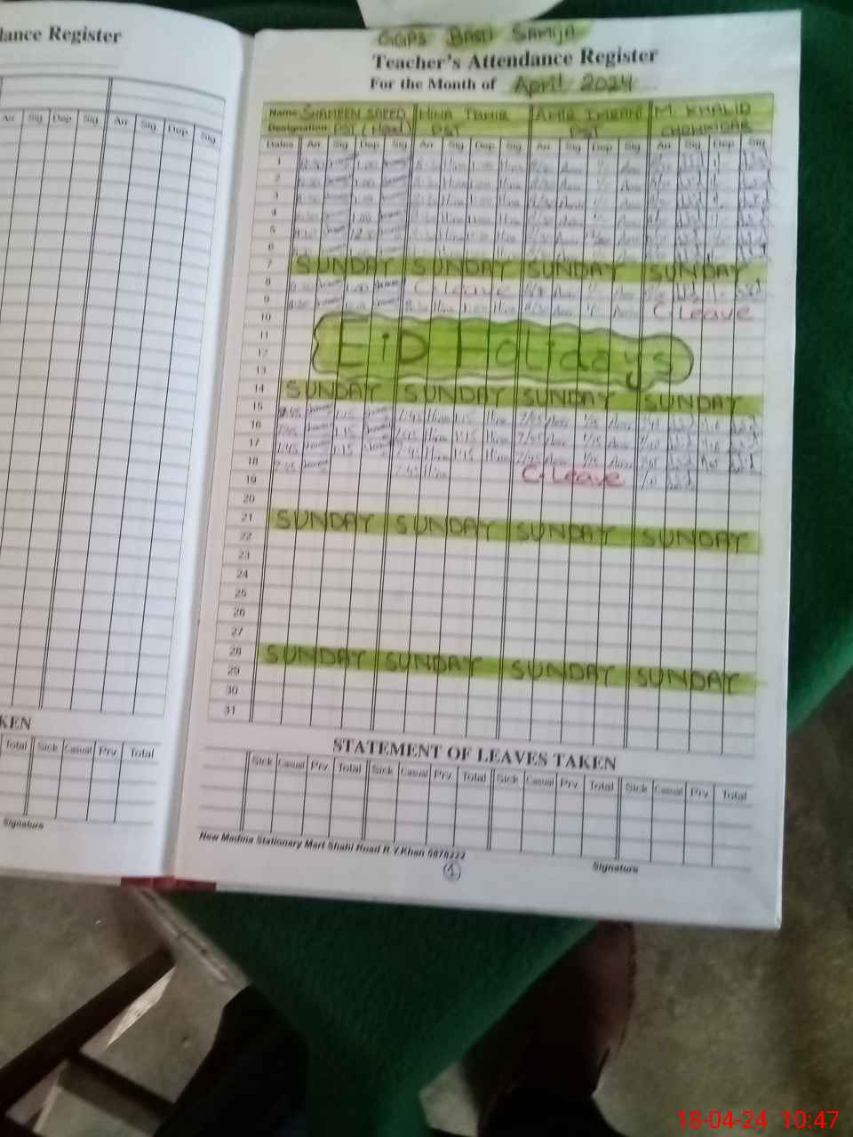| Name: Sh**** Sa**** Designation: (School Headmaster's/Headmistress's) PST Phone/Cell Number: 03**** |
