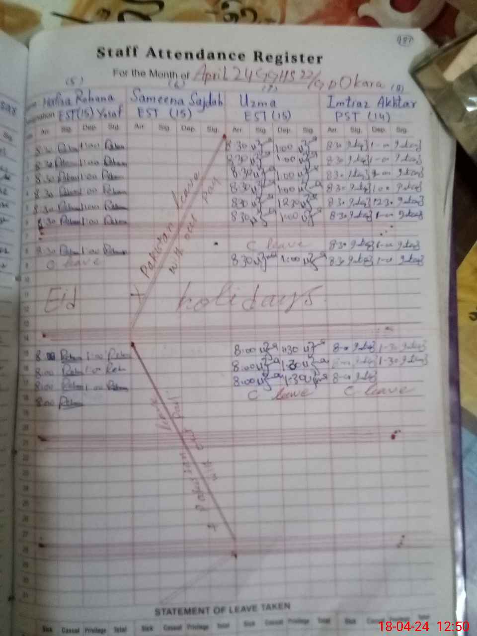 | Leave | Duty | Absent | Maternity | Medical | Ex- Pak |