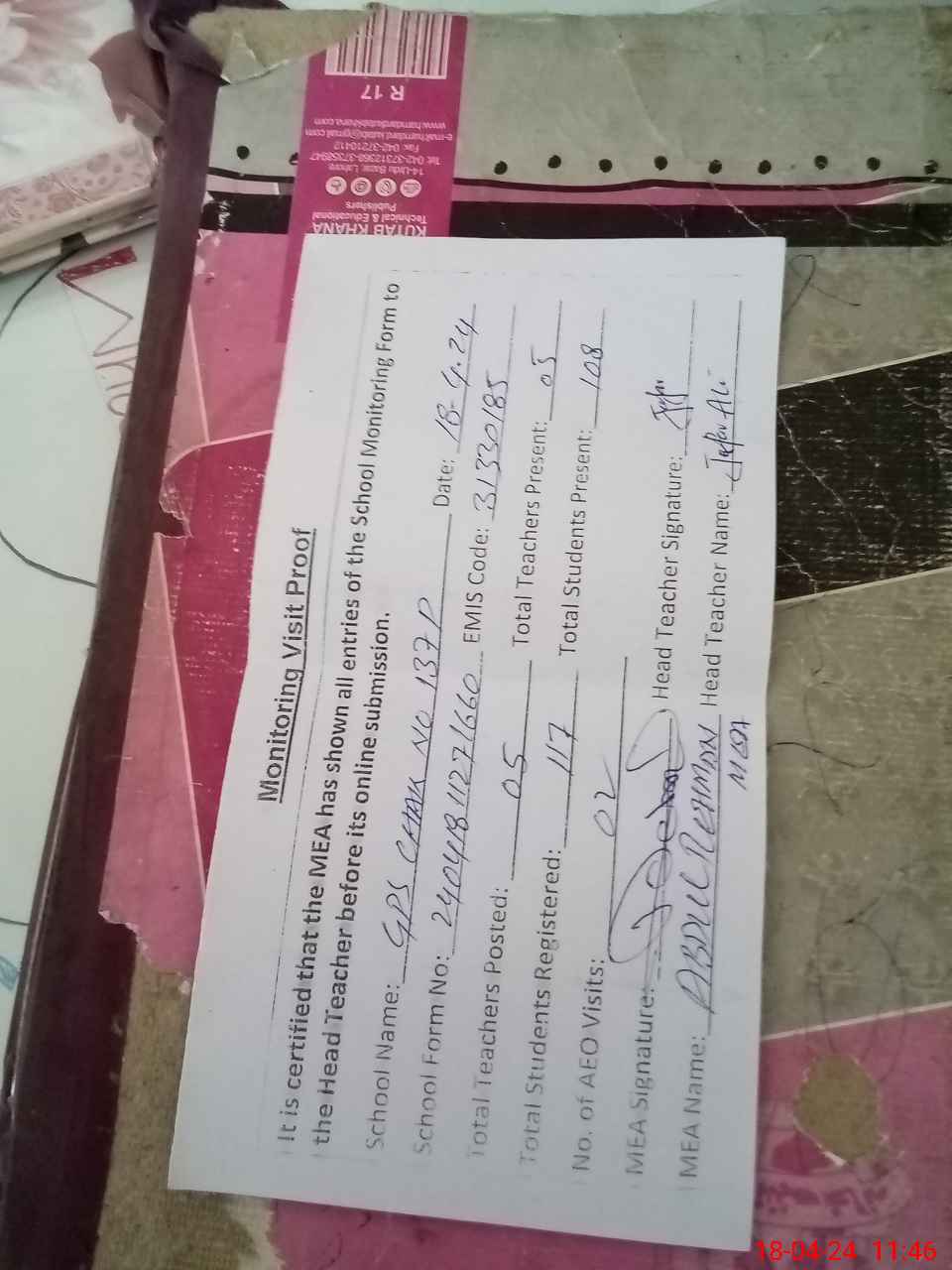 | EMIS Code: 31330185 | Name of School: GPS CHAK NO. 137/P | |||