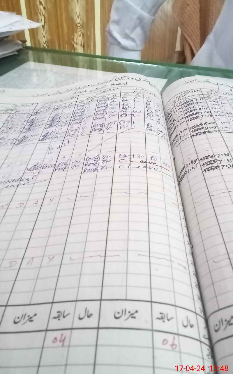 | CNIC | Full Name | Designation | R/C | Absence During Last Calender Month |