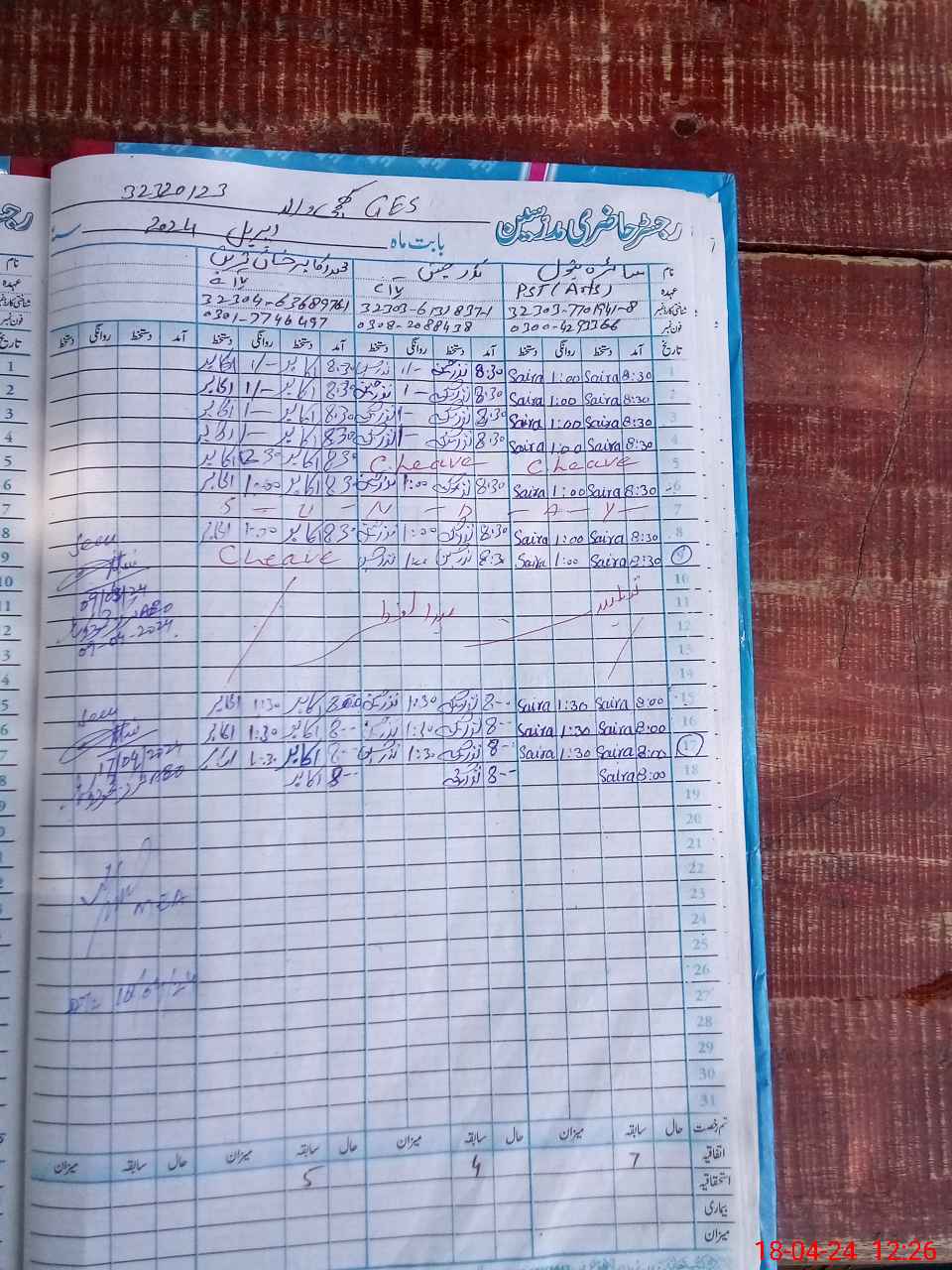| Name: Mu**** Az**** Designation: (School Headmaster's/Headmistress's) S.S.T.(Sci) Phone/Cell Number: 03**** |