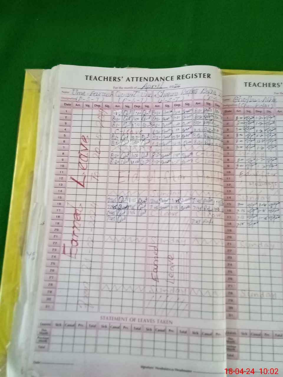 | Leave | Duty | Absent | Maternity | Medical | Ex- Pak |