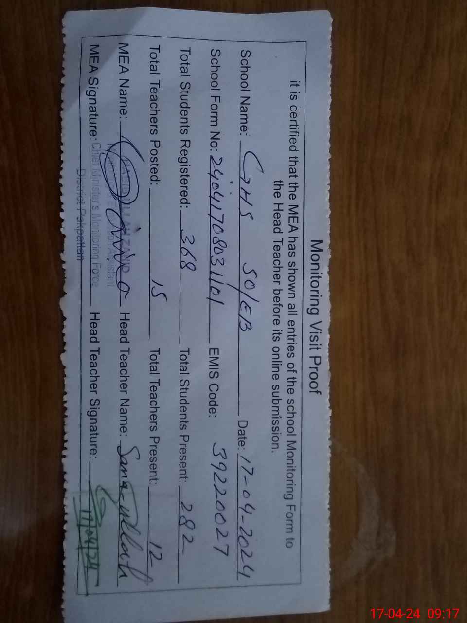 | EMIS Code: 39220027 | Name of School: GHS 50/EB | |||