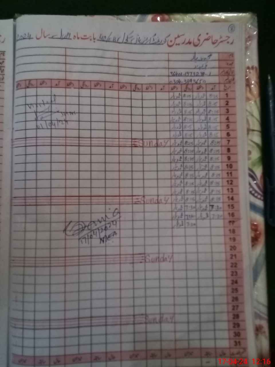 | Name: BU**** HA**** Designation: (School Headmaster's/Headmistress's) SST (GENERAL) Phone/Cell Number: 03**** |