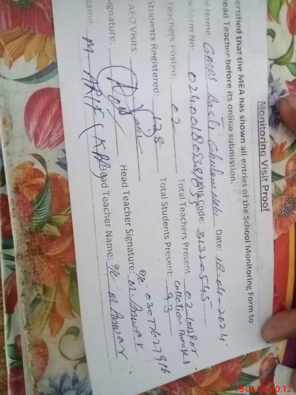 | EMIS Code: 31320545 | Name of School: GMPS BASTI GHULAM NABI | |||