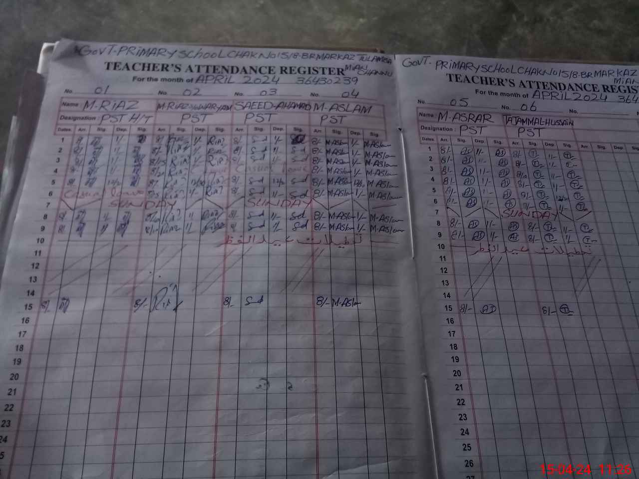 | Name: MU**** RI**** Designation: (School Headmaster's/Headmistress's) PST Phone/Cell Number: 03**** |