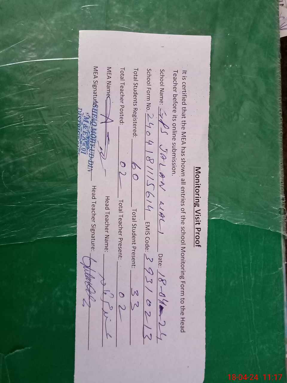 | Certified that this School was Inspected by the Undersigned MEA/DMO Today and the Information Stated Above is as Per Record. | |||||