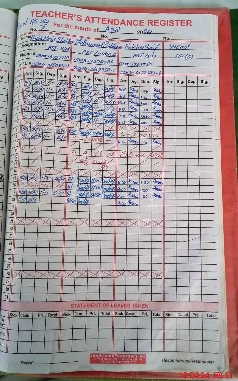 | Name: Na**** Sh**** Designation: (School Headmaster's/Headmistress's) SST Phone/Cell Number: 03**** |