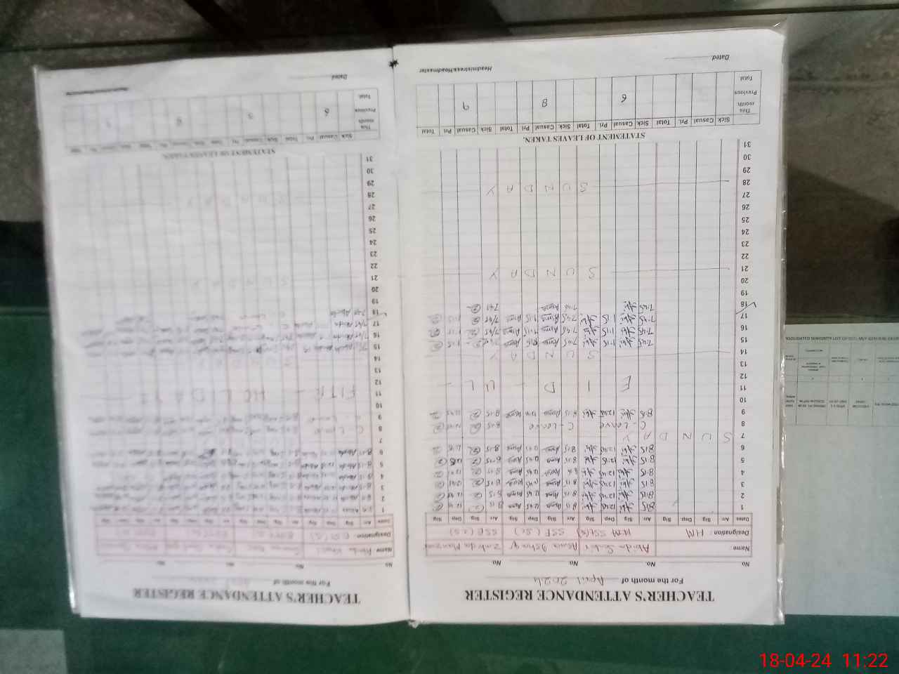 | CNIC | Full Name | Designation | R/C | Absence During Last Calender Month |