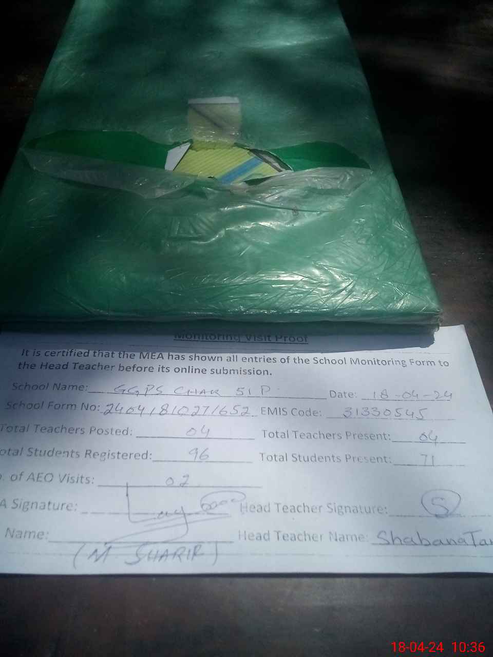 | Attendance Register | Head Teacher | MEA with School | Visit Proof |
