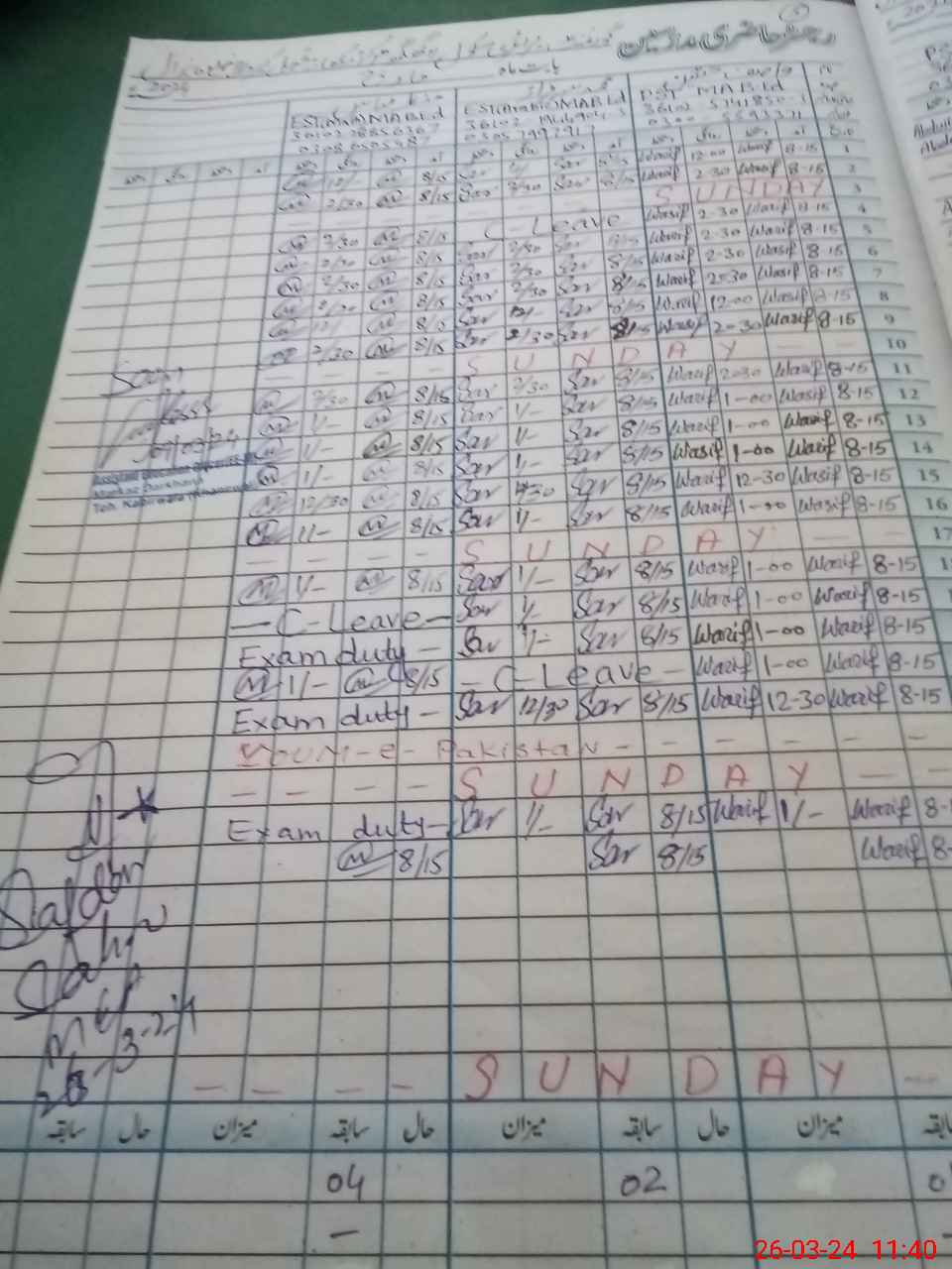 | Leave | Duty | Absent | Maternity | Medical | Ex- Pak |