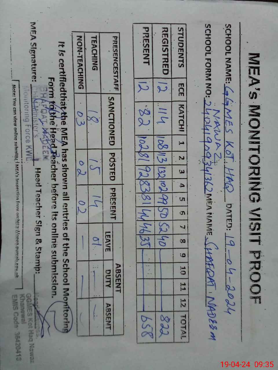 | EMIS Code: 36420418 | Name of School: GGMES KOT HAQ NAWAZ, OLD KHANEWAL | |||