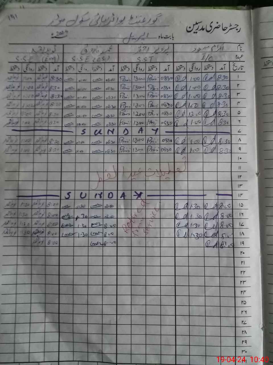 | CNIC | Full Name | Designation | R/C | Absence During Last Calender Month |