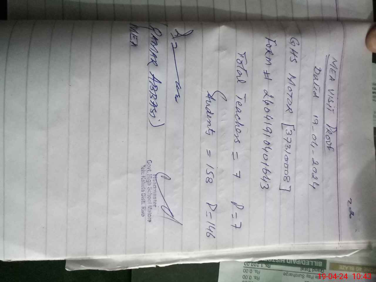 | Attendance Register | Head Teacher | MEA with School | Visit Proof |