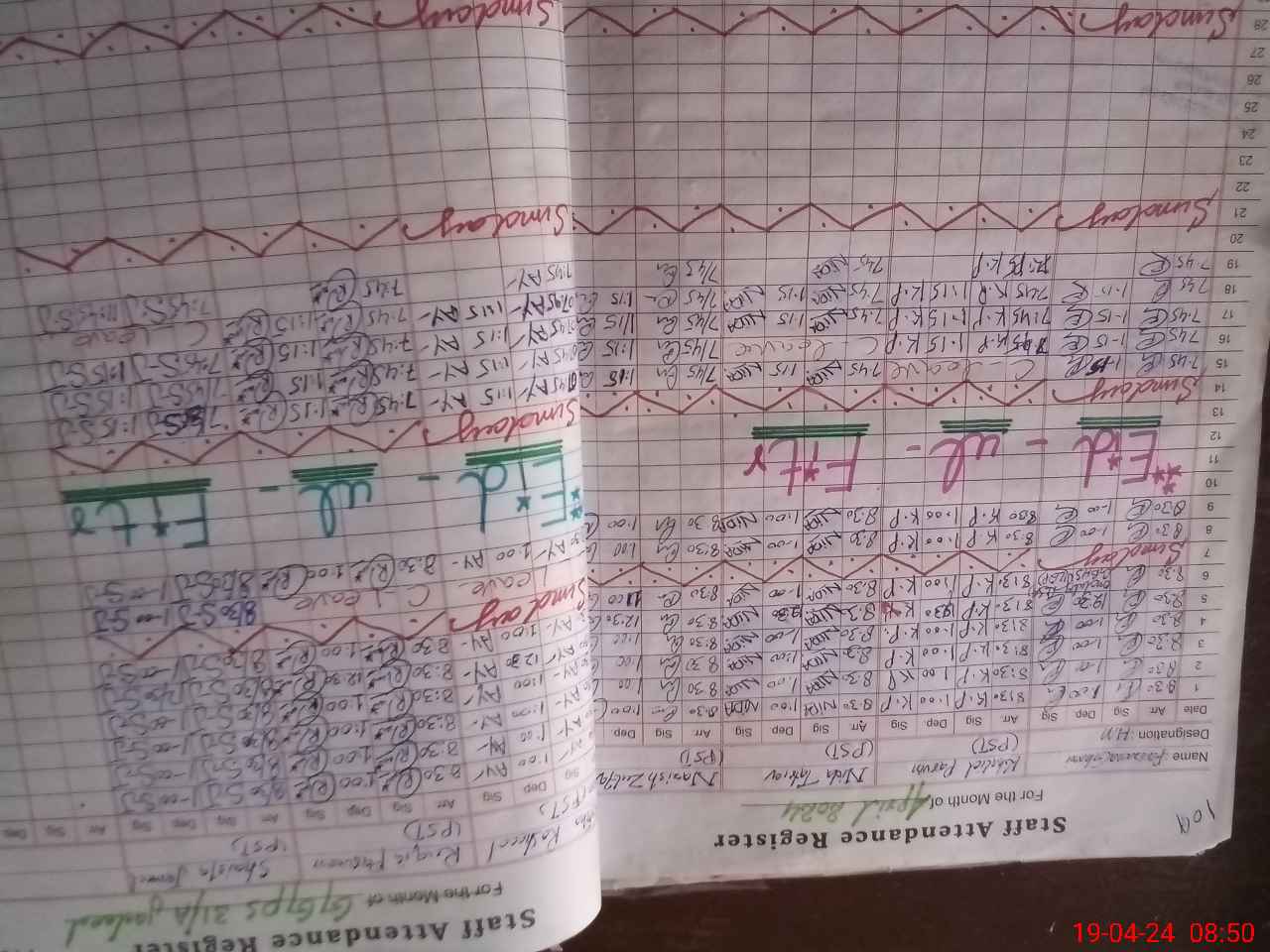 | CNIC | Full Name | Designation | R/C | Absence During Last Calender Month |