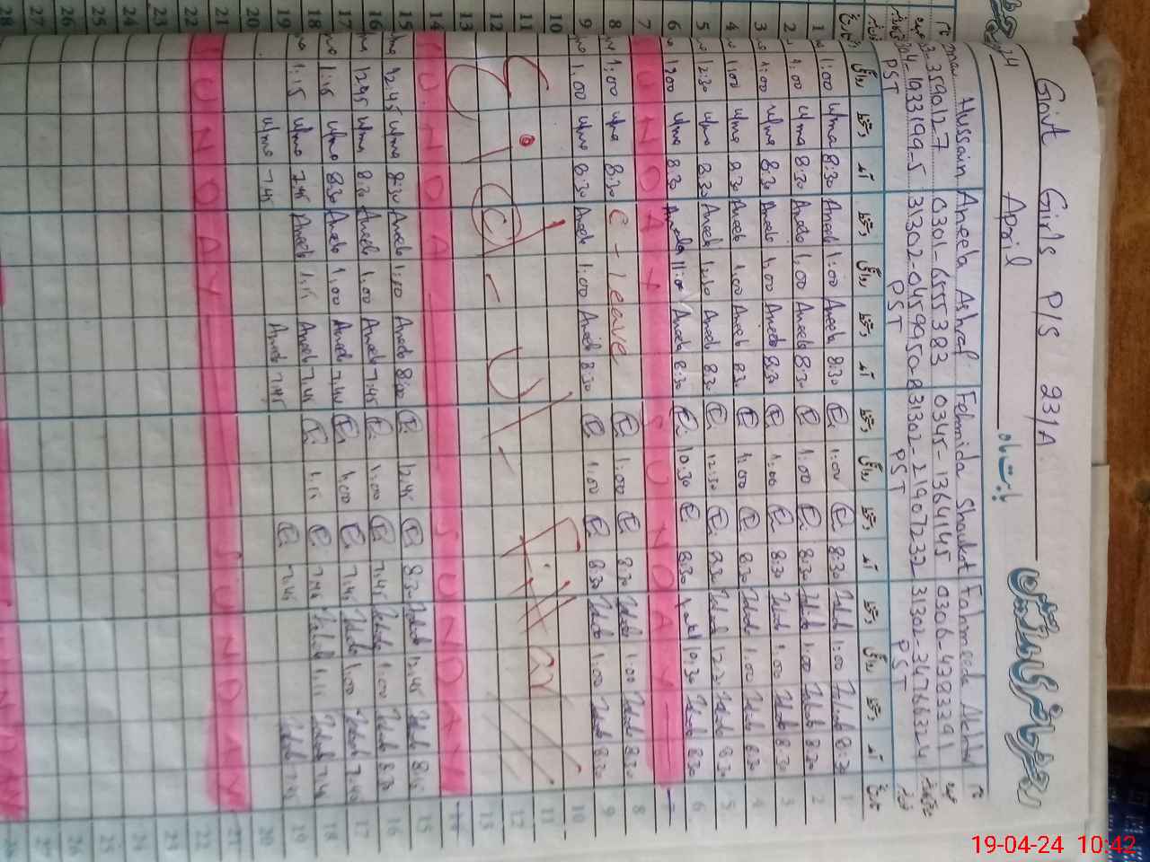 | CNIC | Full Name | Designation | R/C | Absence During Last Calender Month |