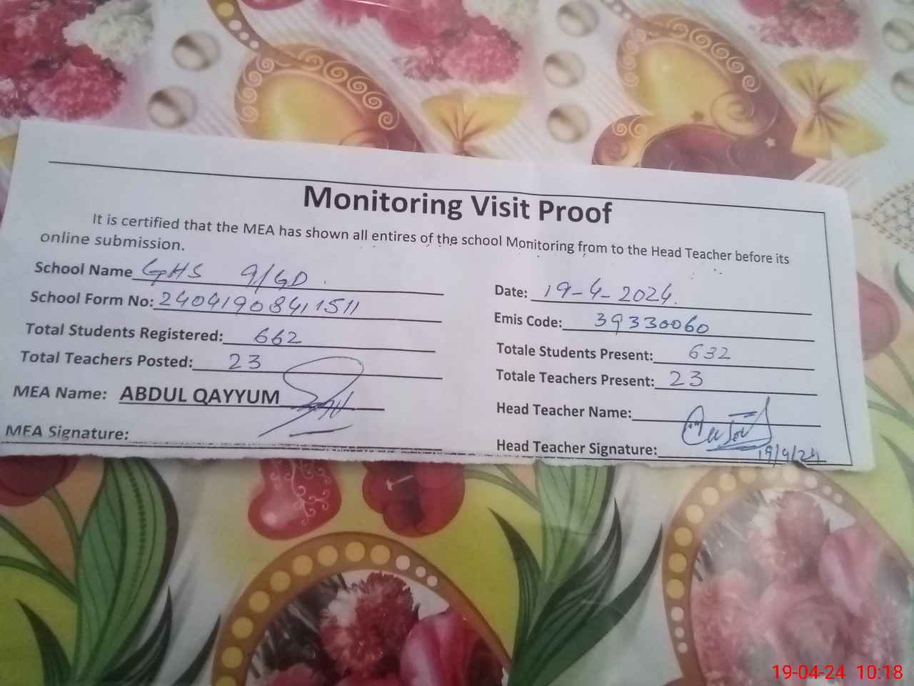 | EMIS Code: 39330060 | Name of School: GHS 4/G.D | |||